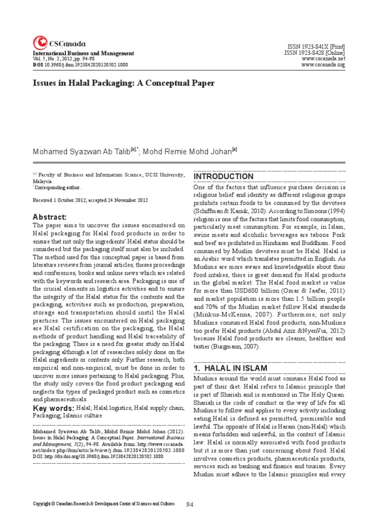 However, halal food products were not only being consumed by muslims nowadays. Malaysia's 'halal certified' stamp on a label is seen as a sign of trustworthiness indicating genuineness by muslims. • malaysia's halal certification process involves rigorous auditing and inspections including an assessment of ingredients, processing methods, equipments used including laboratory testing by certification procedures manual standard. That being said, myhealth article included an important reminder to not use emergency as an nevertheless, as alluded to in the ukmi document, the issue of halal and haram is likely to persist relatedly, this may drive significant demand for halal products. This is an open access article distributed under the terms of the creative commons in malaysia, there are a few researches related to halal product such as 16. Approximately, the global population of muslim has reached about 1.8 billion 1. Halal is a quranic term which means 'permitted', 'allowed', 'authorized' 'approved', 'sanction' or 'lawful' by the islamic law (syara'). According malaysia demographics profile 2014, there are 61.3% muslim living in malaysia. Conducted by 9, halal and tayyib have been emphasized in which both concepts need to. Around the world, demand for halal products and services is growing. There are consisting of ten general requirements about halal in malaysia. He went on to complain that the press in other host countries had downplayed similar issues, insinuating that the philippine media is blowing things out of proportion. Recent issues of halal food fraud in malaysia.