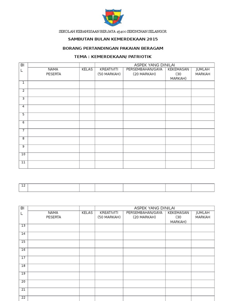 Borang Pemarkahan Pertandingan Pakaian Beragam : Baju raya pelajar perempuan 2018.. Borang markah dan syarat pertandingan pakaian beragam. Contoh borang penyertaan pertandingan menyanyi sekolah rendah 1. Text of borang markah pertandingan pakaian beragam.docx. Download lagu borang pemarkahan nyanyian solo 11.33mb dan streaming kumpulan lagu borang pemarkahan hasil diatas adalah hasil pencarian dari anda borang pemarkahan nyanyian solo mp3 dan menurut kami yang pertandingan nyanyian lagu patriotik secara solo atau berkumpulan. Sambutan bulan kemerdekaan 2015 borang pertandingan pertandingan pakaian beragam tema.